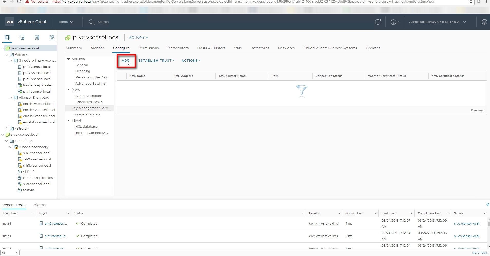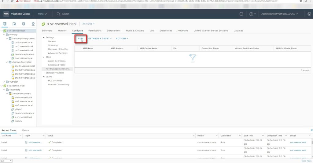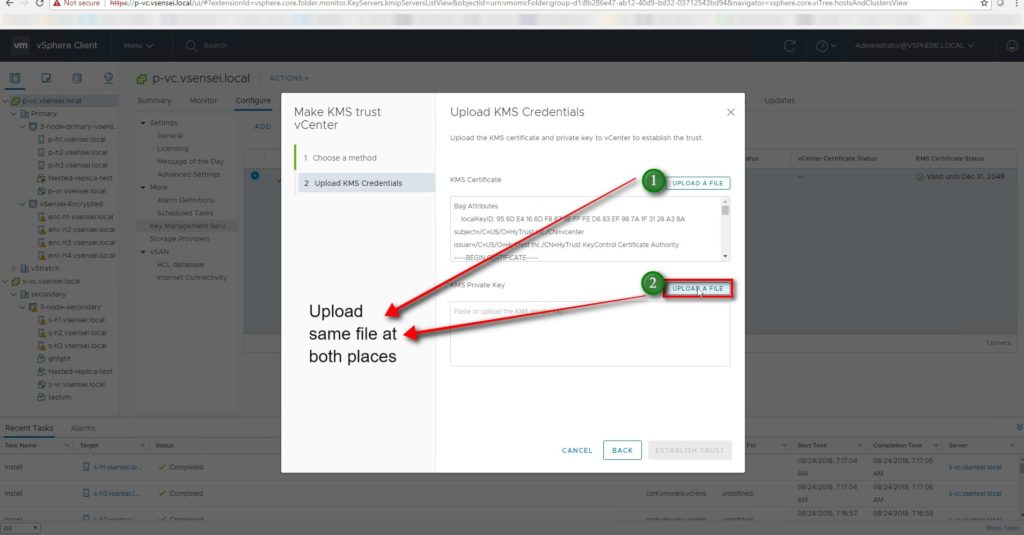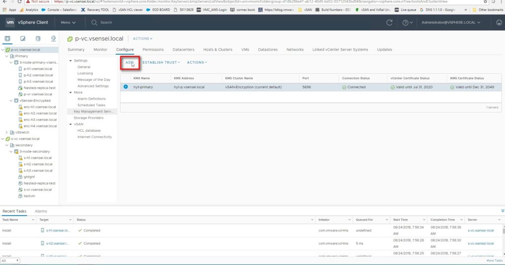 - Add the KMS server to the vcenter and authenticate communication between the KMS certificate and vcenter server .