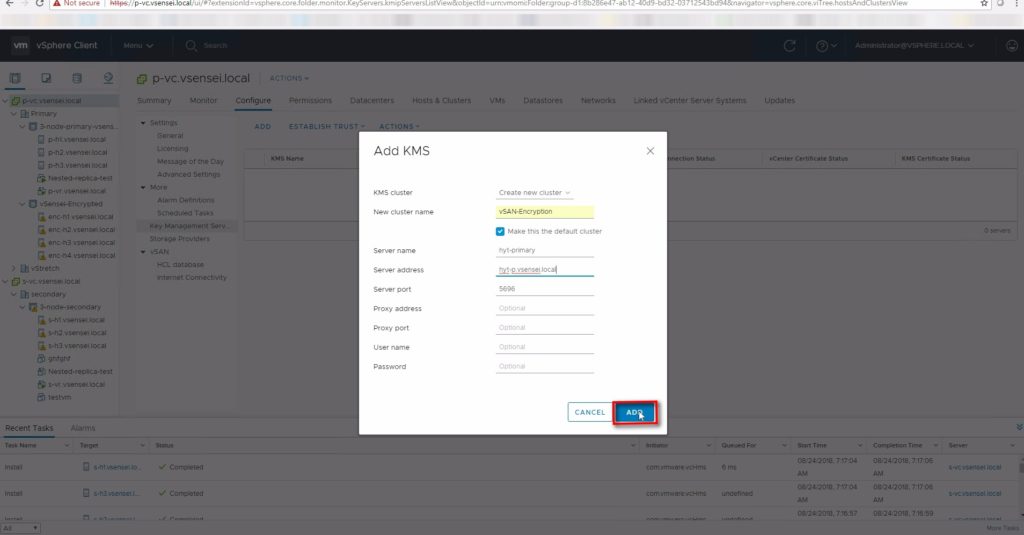 Configure-vSAN cluster with Encryption Enabled[