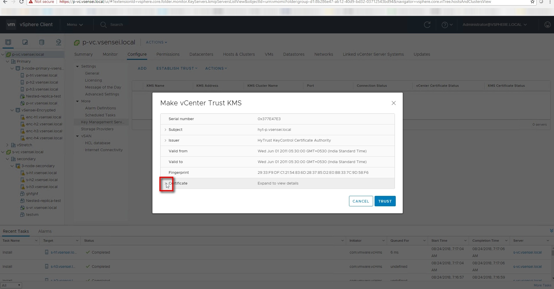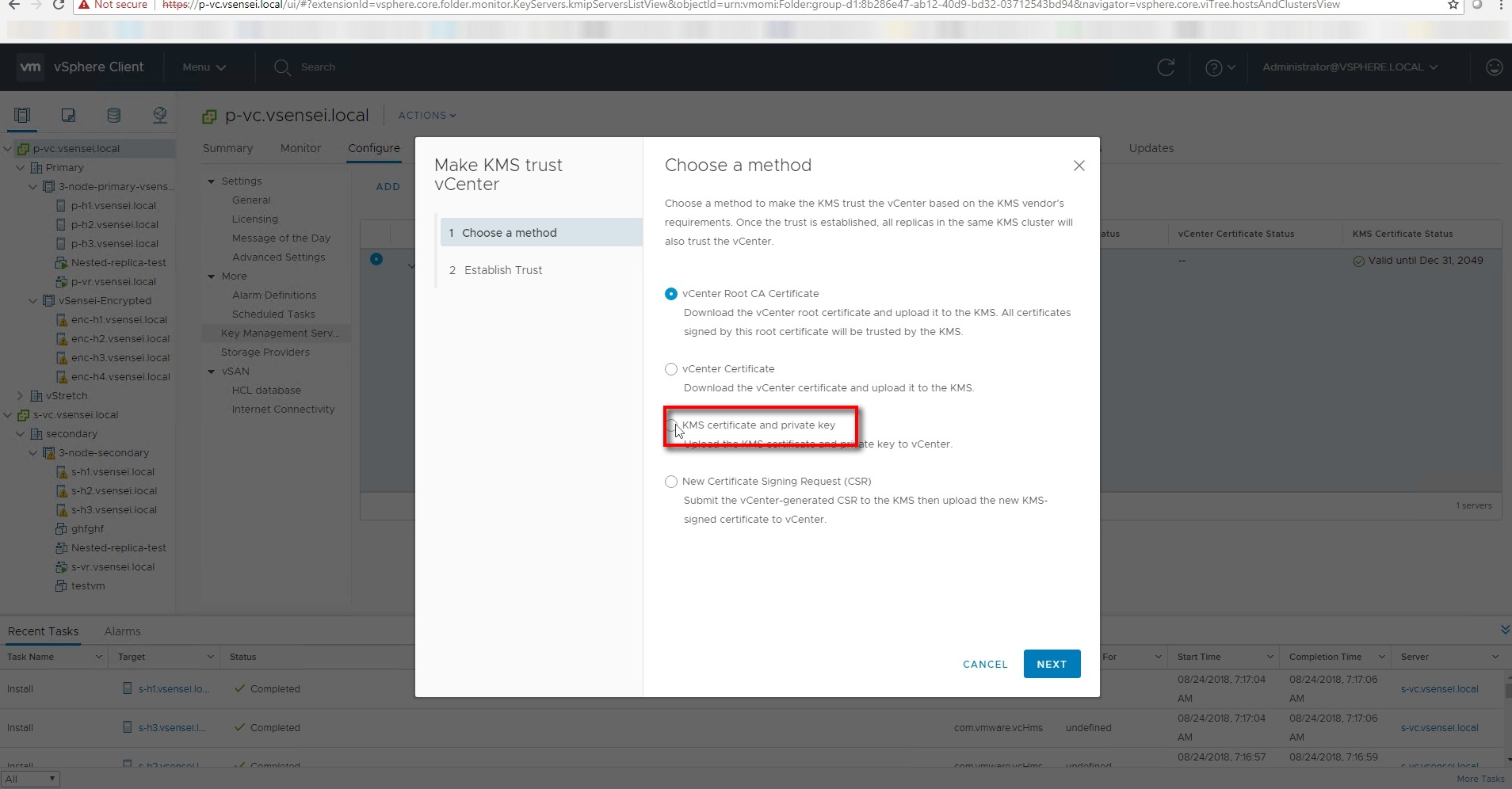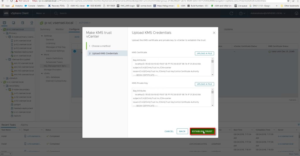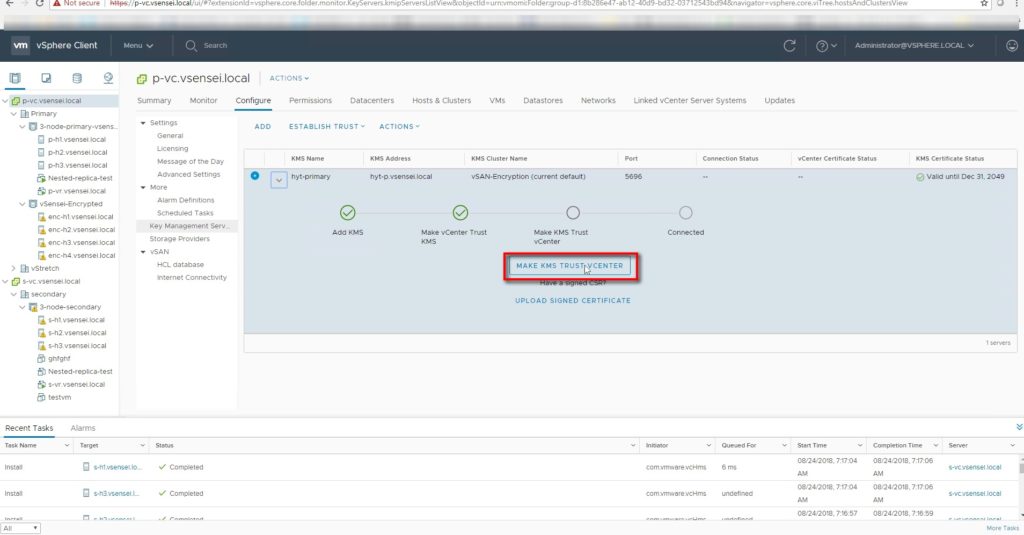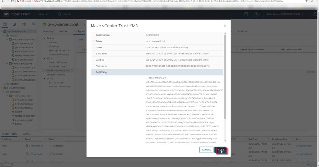 VC pushes KMS certificate to all the hosts part of vSAN cluster with KEKID
