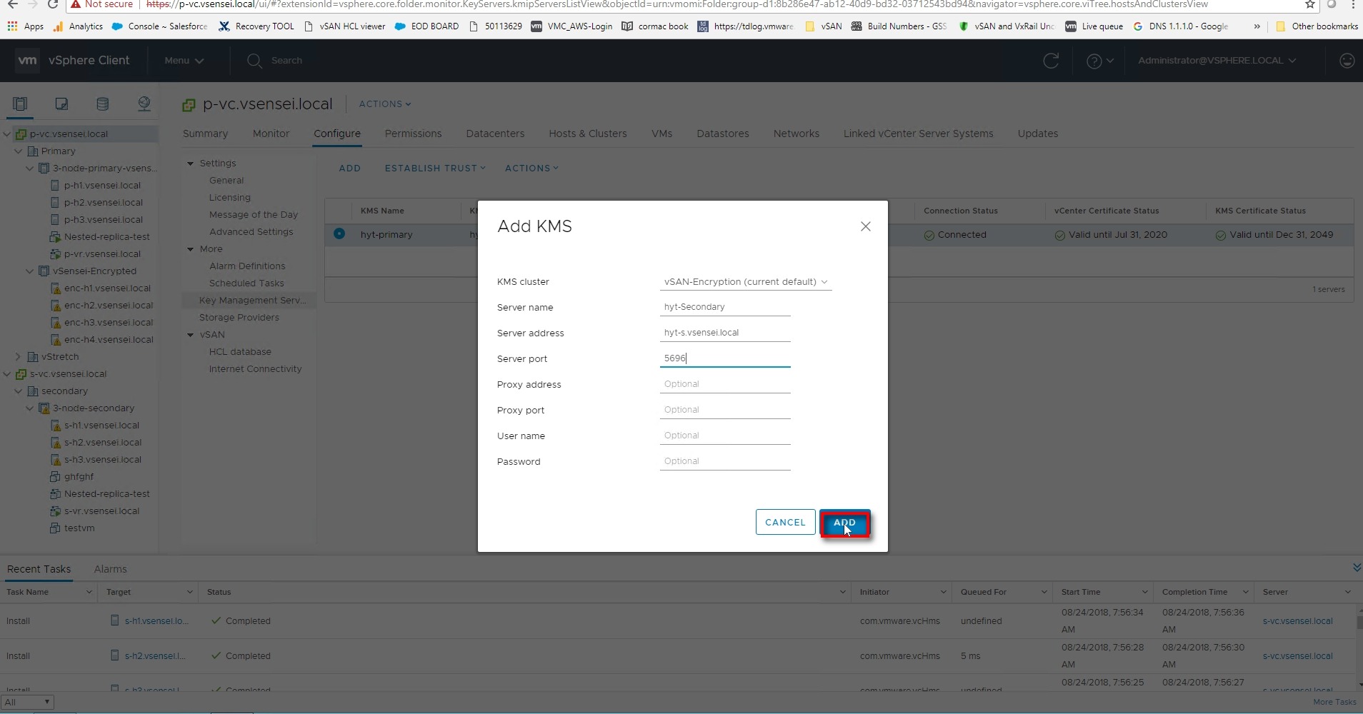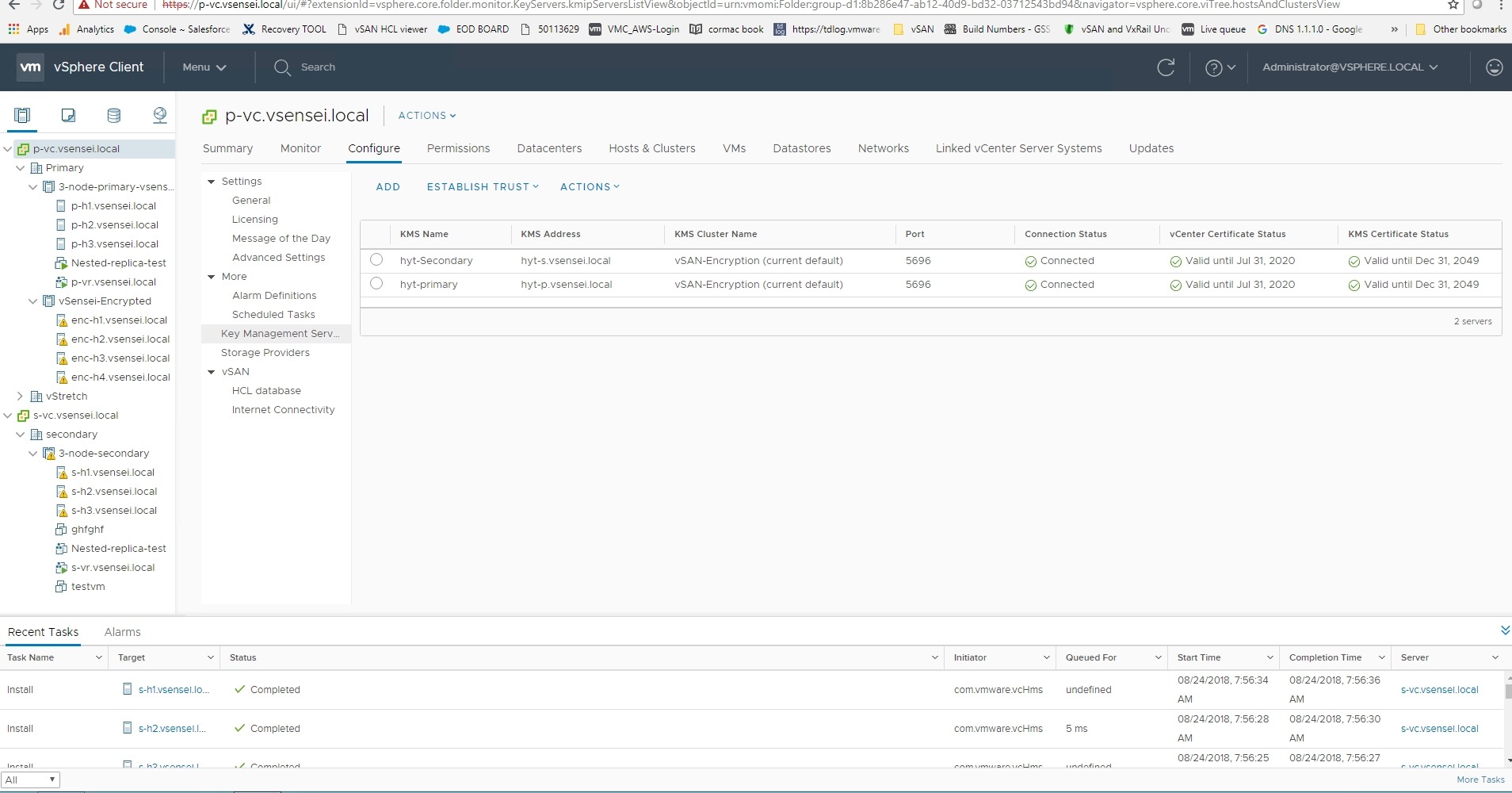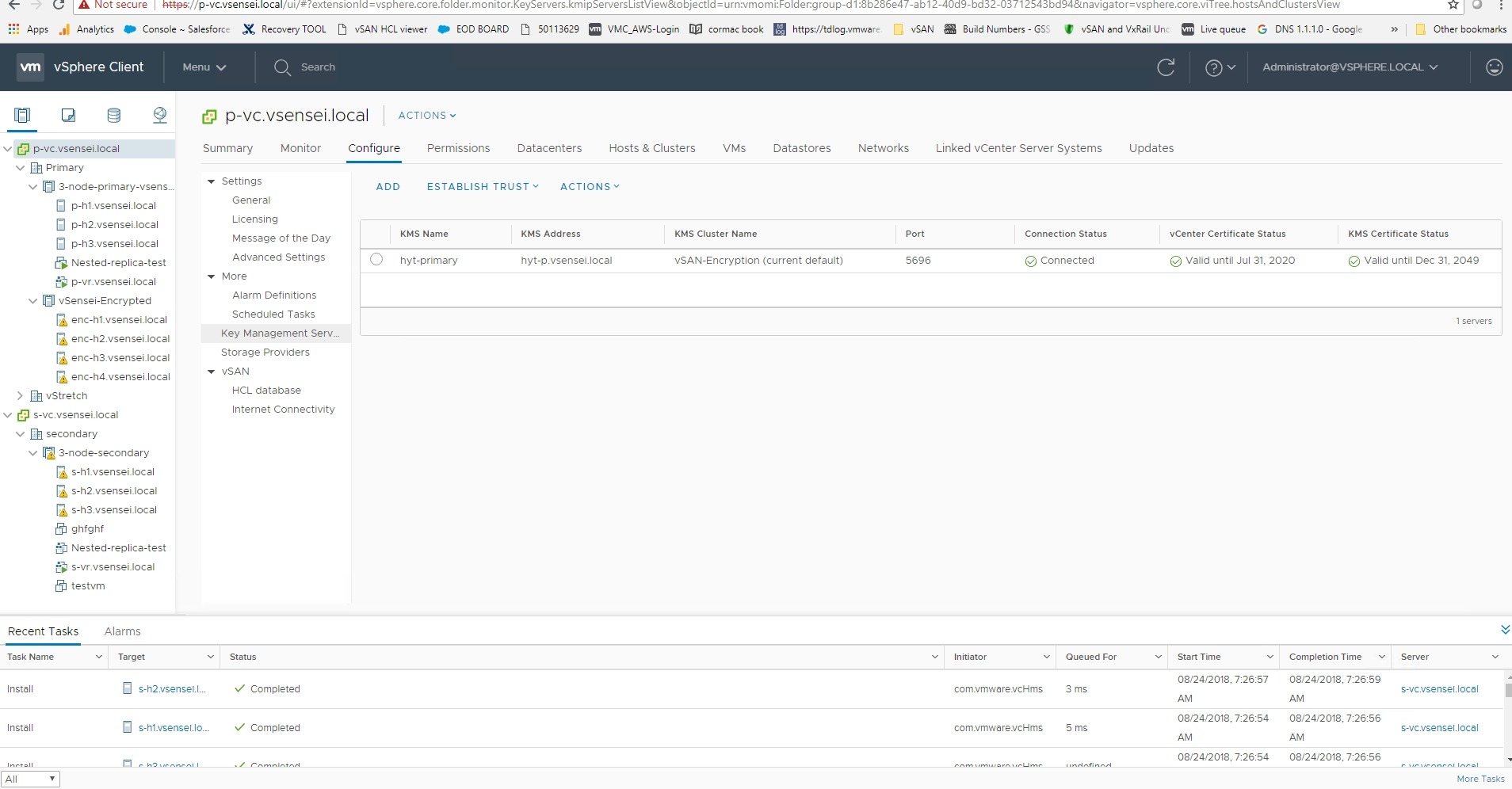 I have been asked about vSAN encryption a lot these days as the security requirement and standards are exponentially increasing in the IT industry . Data encryption is a key factor to make sure mission critical data are not stolen . Here is a quick and simple guide to configure vSAN-encryption with a Hy-Trust appliance and best practices to deploy and configure encryption cluster with High-Availability .