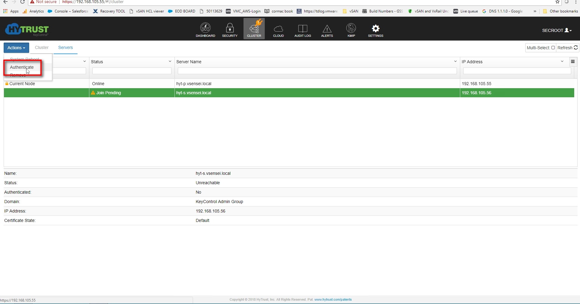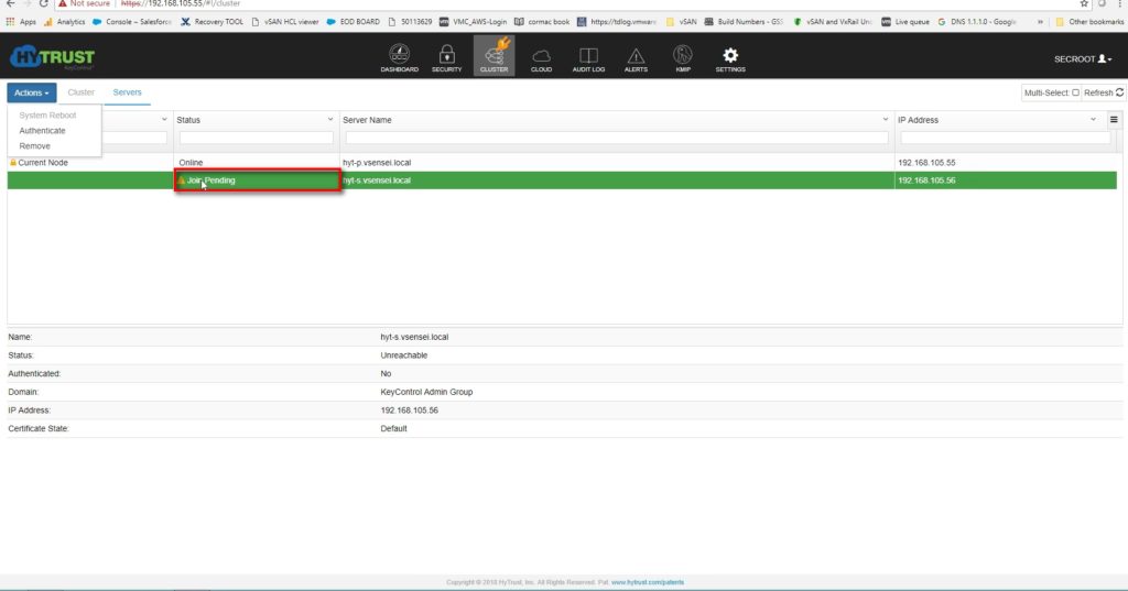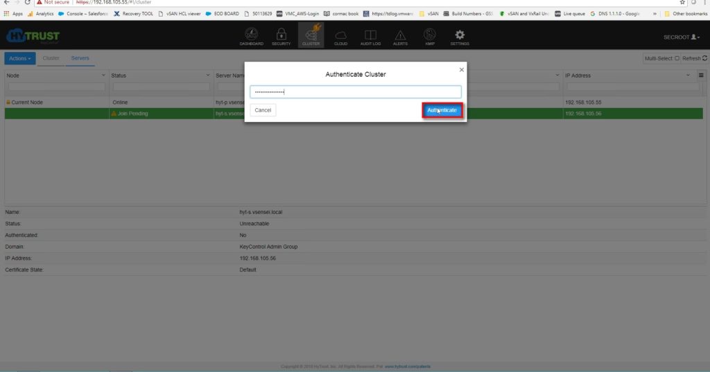 If desired, install additional KeyControl nodes and join them to the cluster. The number of nodes you can install is dictated by your KeyControl license , always a good practice to have at least two appliance in HA configuration . VCenter allows to add up to 6 appliance on a single KMS-Cluster .
