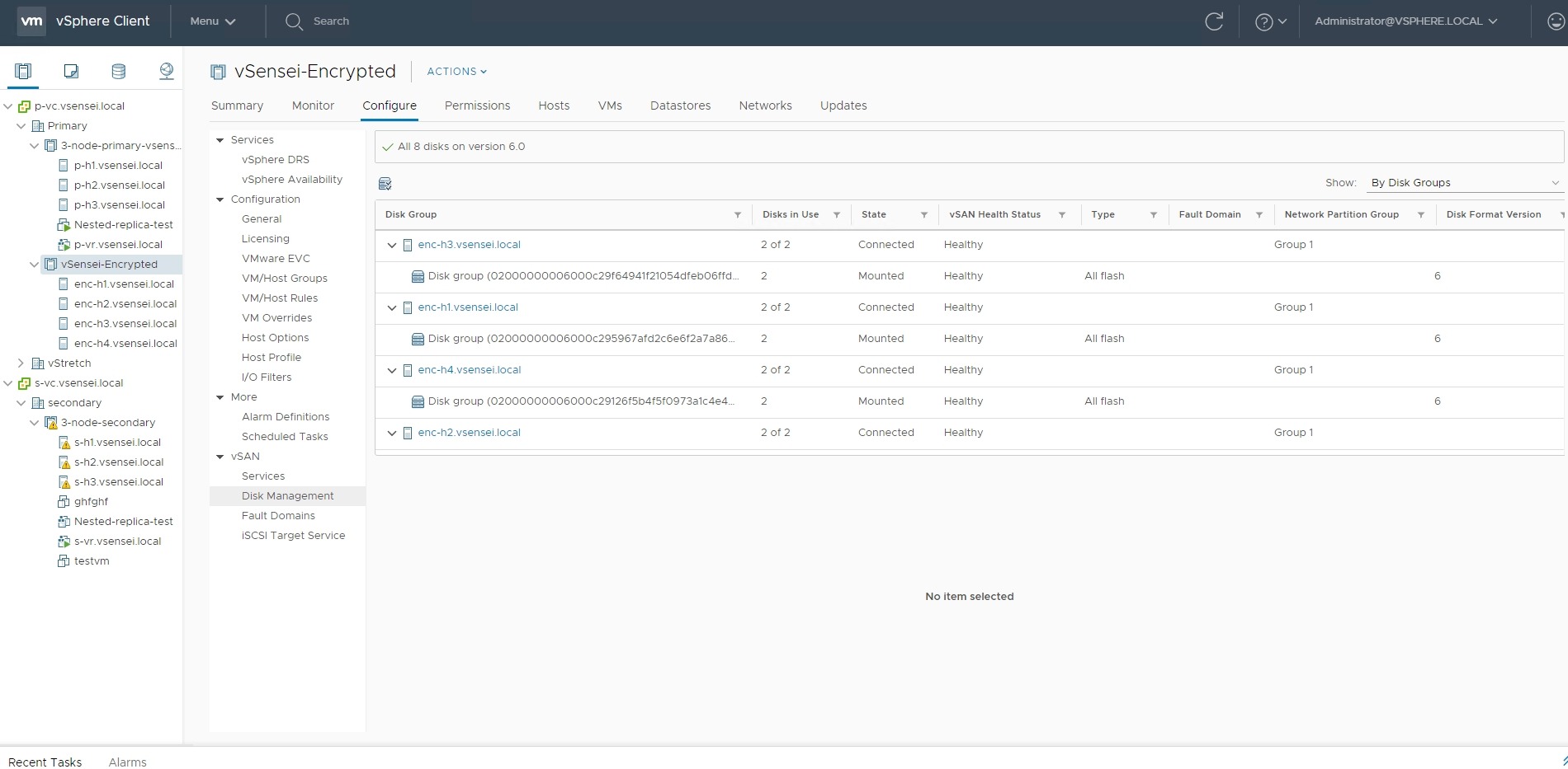 Device: naa.6000c295967afd2c6e6f2a7a862bf998 VSAN UUID: 524e53e9-7e08-30e6-61c0-017bc8a01ad0 VSAN Disk Group UUID: 524e53e9-7e08-30e6-61c0-017bc8a01ad0 In CMMDS: true Is Capacity Tier: false