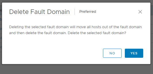 To be able to remove and add the hosts to a different fault domain , you may have to re-apply policy on certain VMs whose storage policy might not comply when we are about to remove the hosts . It is recommended to change storage policy of few bunch of VMs at a time as there will resync operation involved here , changing policy on multiple VMs at a time might fill up the datastore since certain storage policy change will require double the amount of space consumed during the transition .
