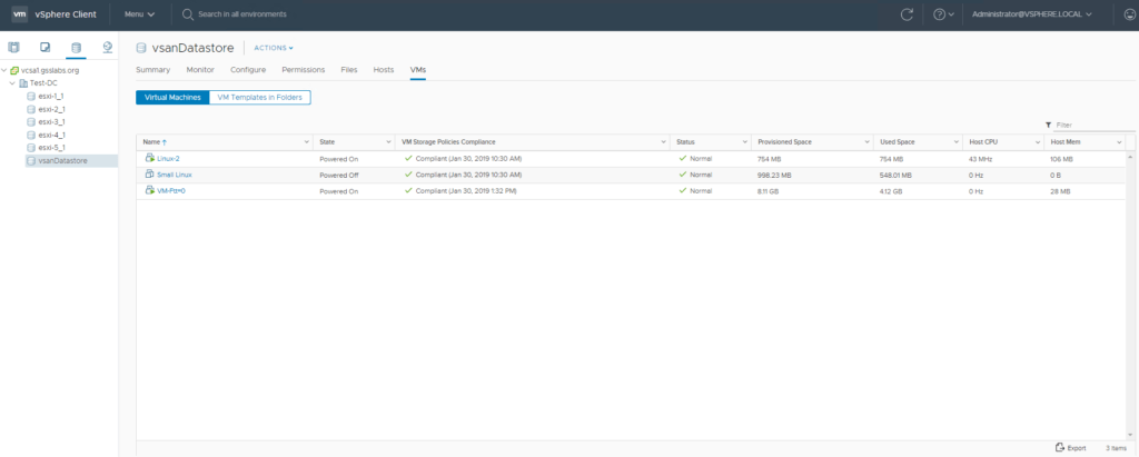 If there were any non-critical VMs which were set to ftt-0 to address space crunch before configuring stretched cluster those VMs can be now re-protected with FTT-1 policy as we have regained available space on the vSAN datastore since the hosts are now contributing space to storage .