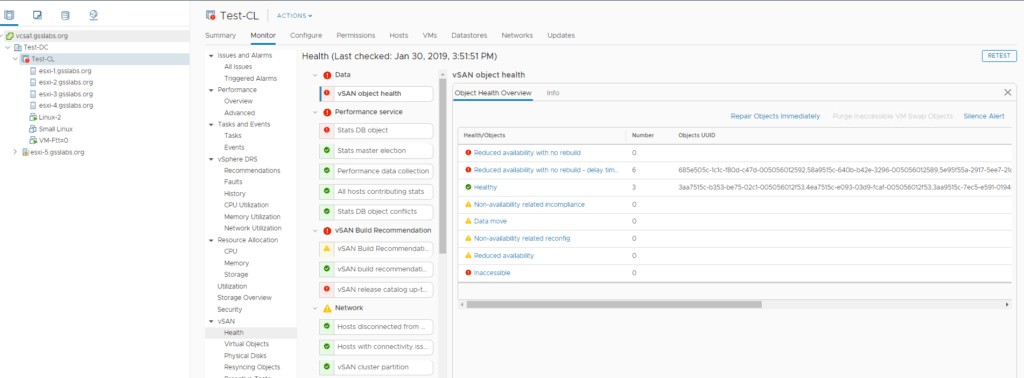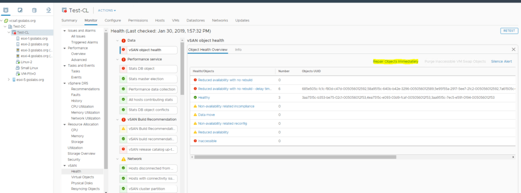Step1: Before you start taking any actions , you will definitely need to make sure that all the VM storage policy are compliant and vSAN health reports no errors under “Data” section .