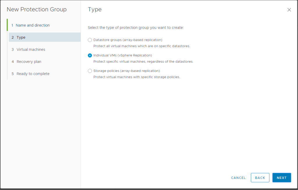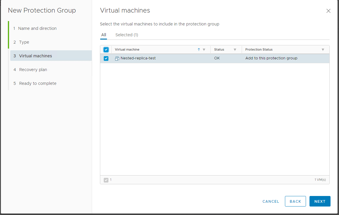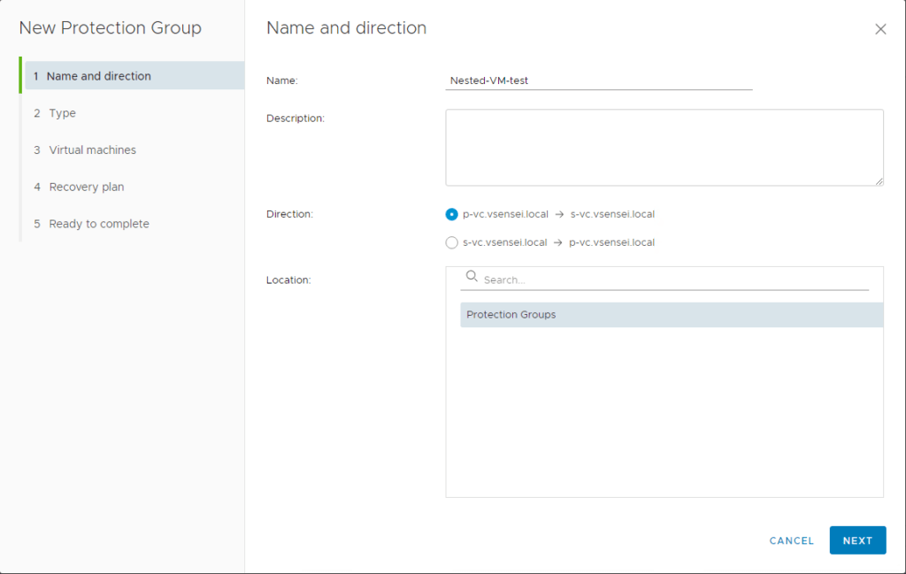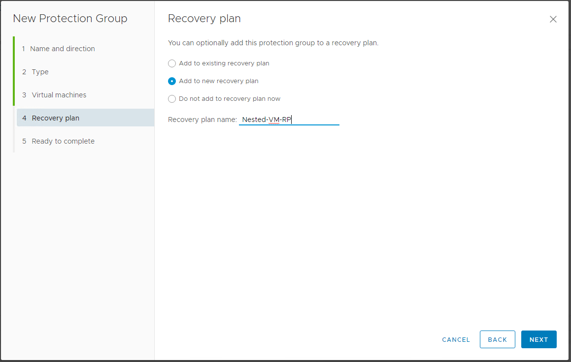 Configuring Protection group from New-UI , the wizard looks almost same as the older predecessors , however this also includes creation of recovery plan while creating the protection group I chose to create the RP along with protection group which different from previous versions .