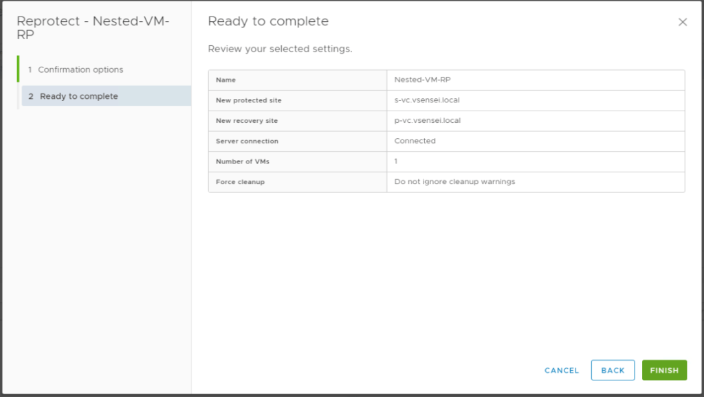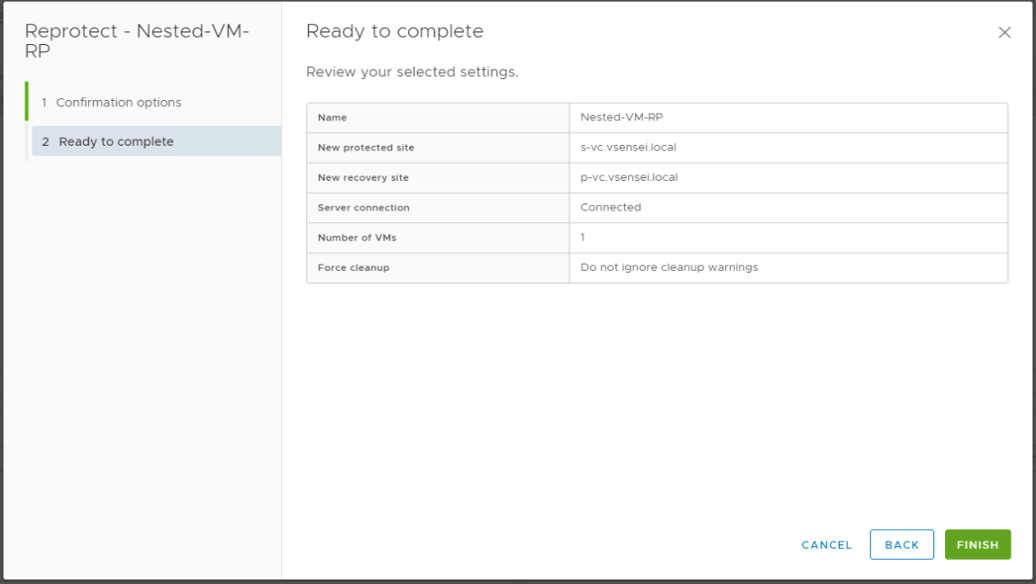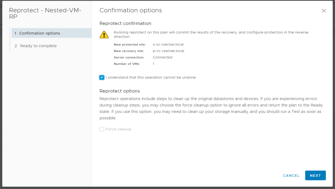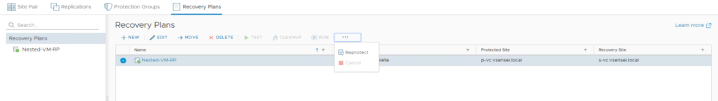 - Run the re-protect to reverse the Direction of protection and replicate the data back to primary site .