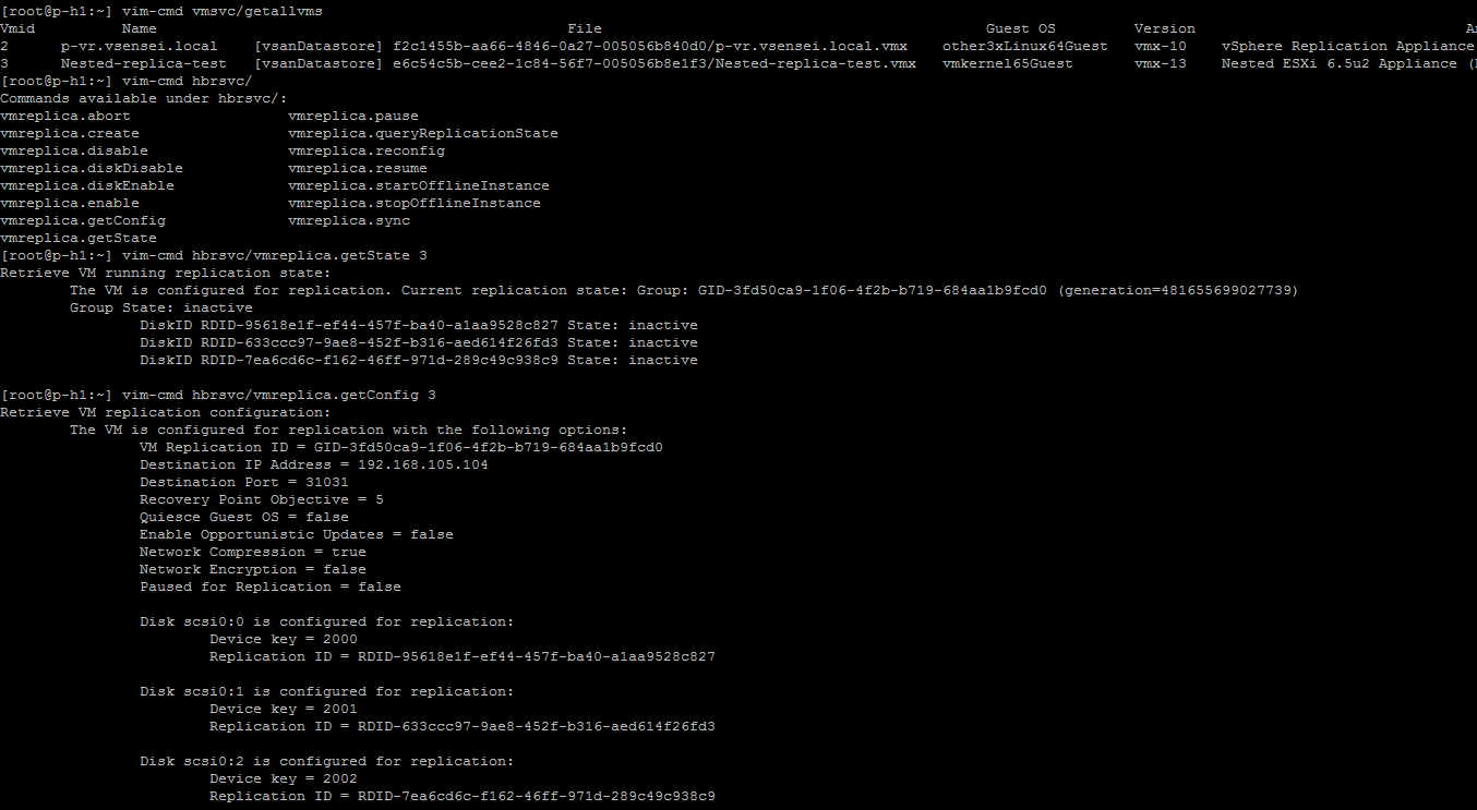 What has changed about the vSphere-Replication from the host perspective . Let check the replication status over SSH and see if there are new commands available for vSphere replication from host perspective . Based on the below screenshot the commands from the host perspective still remains same from the previous version , if the vcenter server is down we will still be able to start/stop/pause/reconfigure replication at times if the two replication servers were still authenticated with each other .