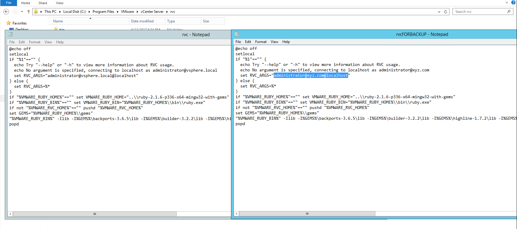 The rvc.bat file is going to attempt logging into your vcenter sever by default with account “administrator@vsphere.local” , however not everyone may have access to this user account or the default vsphere.local might have been changed to a different name during installation of PSC or you may want to login with your administrator account of AD which has permission on your vcenter server .