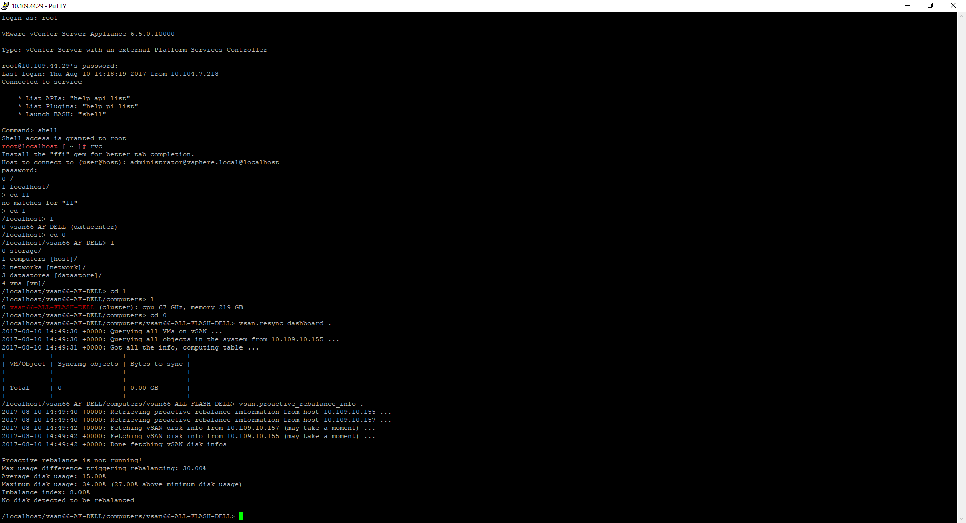 - **Step3 : **We will also need to make sure that there are no ongoing re-sync or re-balance in the cluster with the help of RVC commands on the vCenter server .