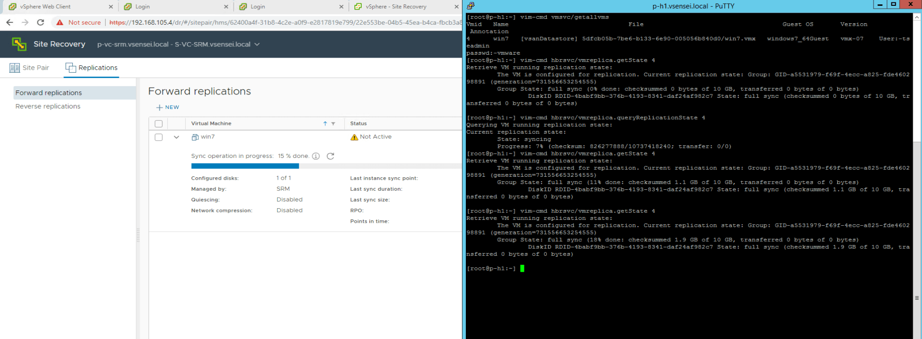 It is good to check the status of the replication from the command line as we will still see the status on the GUI as full-sync however vSphere-Replication appliance will only be comparing the checksum data between the two VMDKs at the source and target once it finishes the checksum comparison , the replication status will go back to read state . You will also see that the amount of data transferred to the Target site will be 0 bytes.