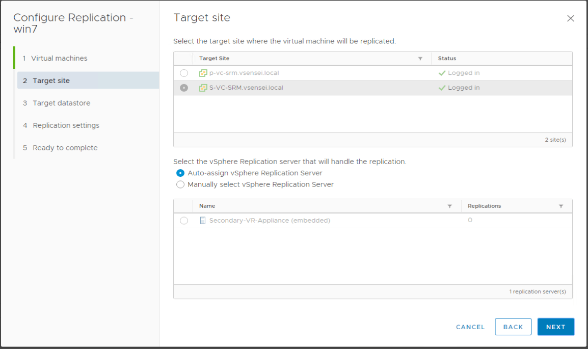 Note : It is expected that the replication status for the VM at the target-site in the incoming direction will show up as “Error state”