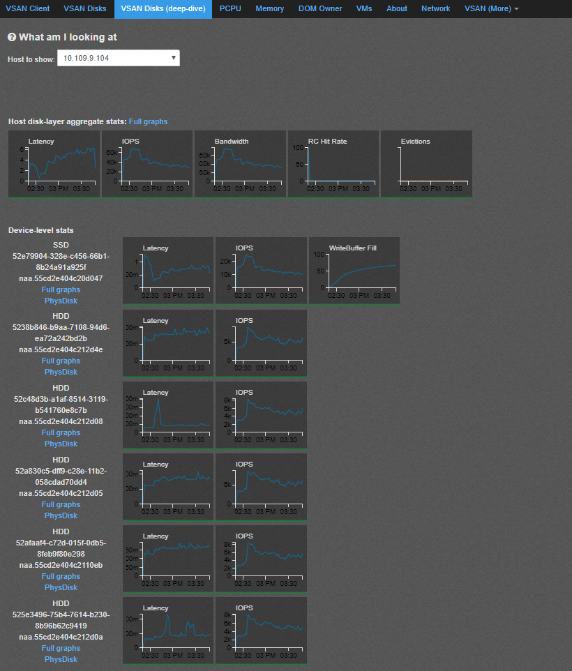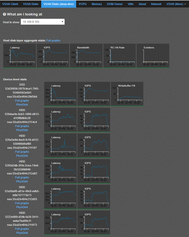 - vSAN-Disks(DeepDive)- Shows the graphs from individual hosts against the devices which participating in the vSAN cluster on respective hosts .