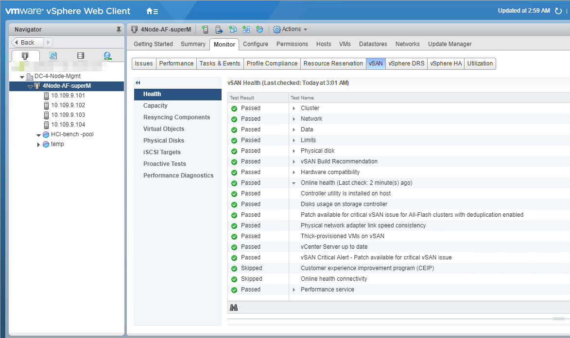 - All-Green vSAN Configuration Health Checks