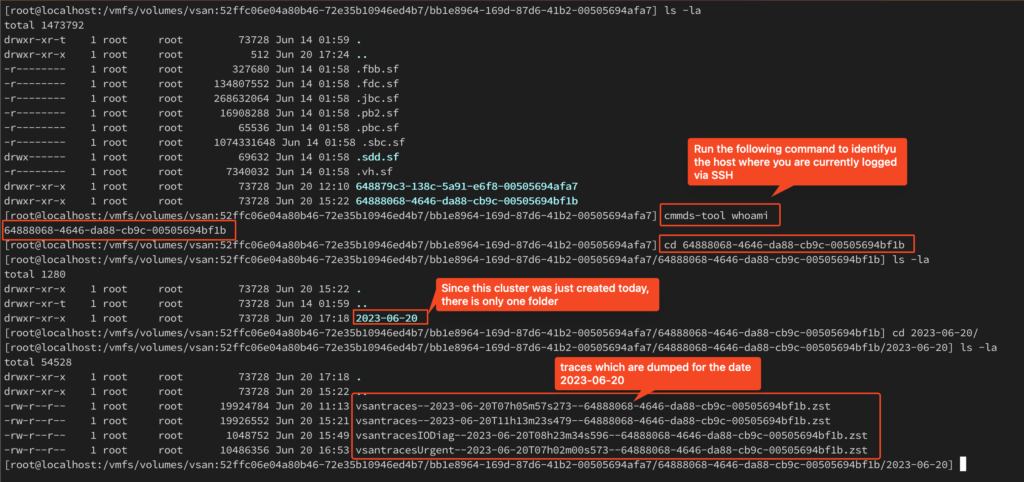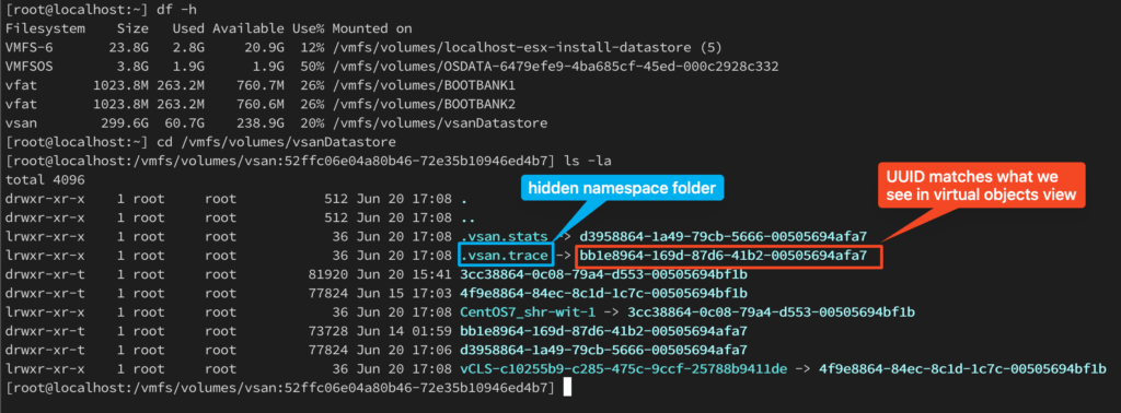 identify .vsan.trace folder or UUID which matches virtual Objects view