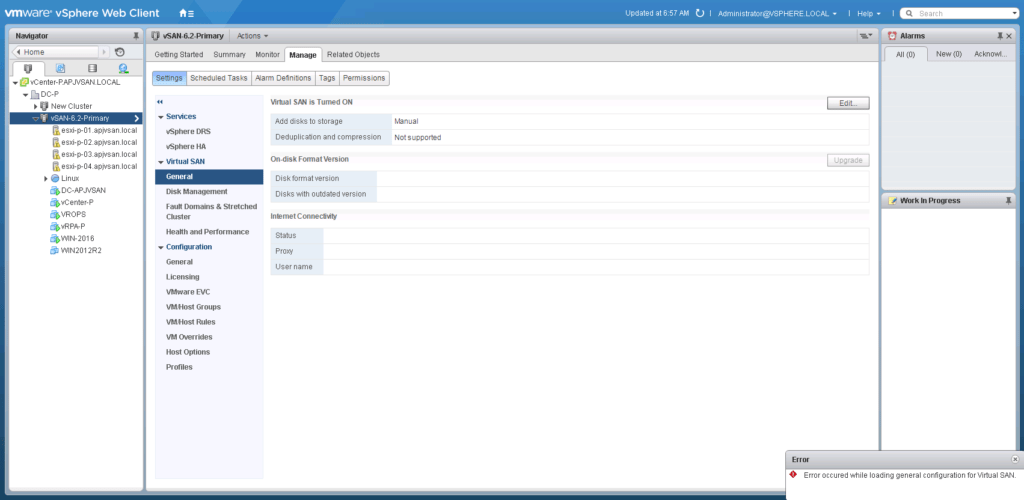 Note** : we will not be seeing all of these problems with vSAN 6.6.1 (running 6.5U2) it looks like the dependency for the Configure -> vSAN tab is now removed , we can still see disk groups , create new clusters and enable vSAN on this release .