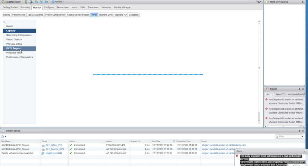 At many times we may see issues with webclient reporting a 120 second time out and we are unable to manage vSAN from the configure (Cluster ⇒ Configure ⇒ vSAN ) and monitor (Cluster ⇒ Monitor⇒ vSAN ) for vSAN . However from the SSH the cluster is health with no issues . This is generally indication of problems with the vSAN health services and some times it is the storage provider service which runs at the vcenter level which is responsible to poll and display information on the web-client for vSAN-UI area .