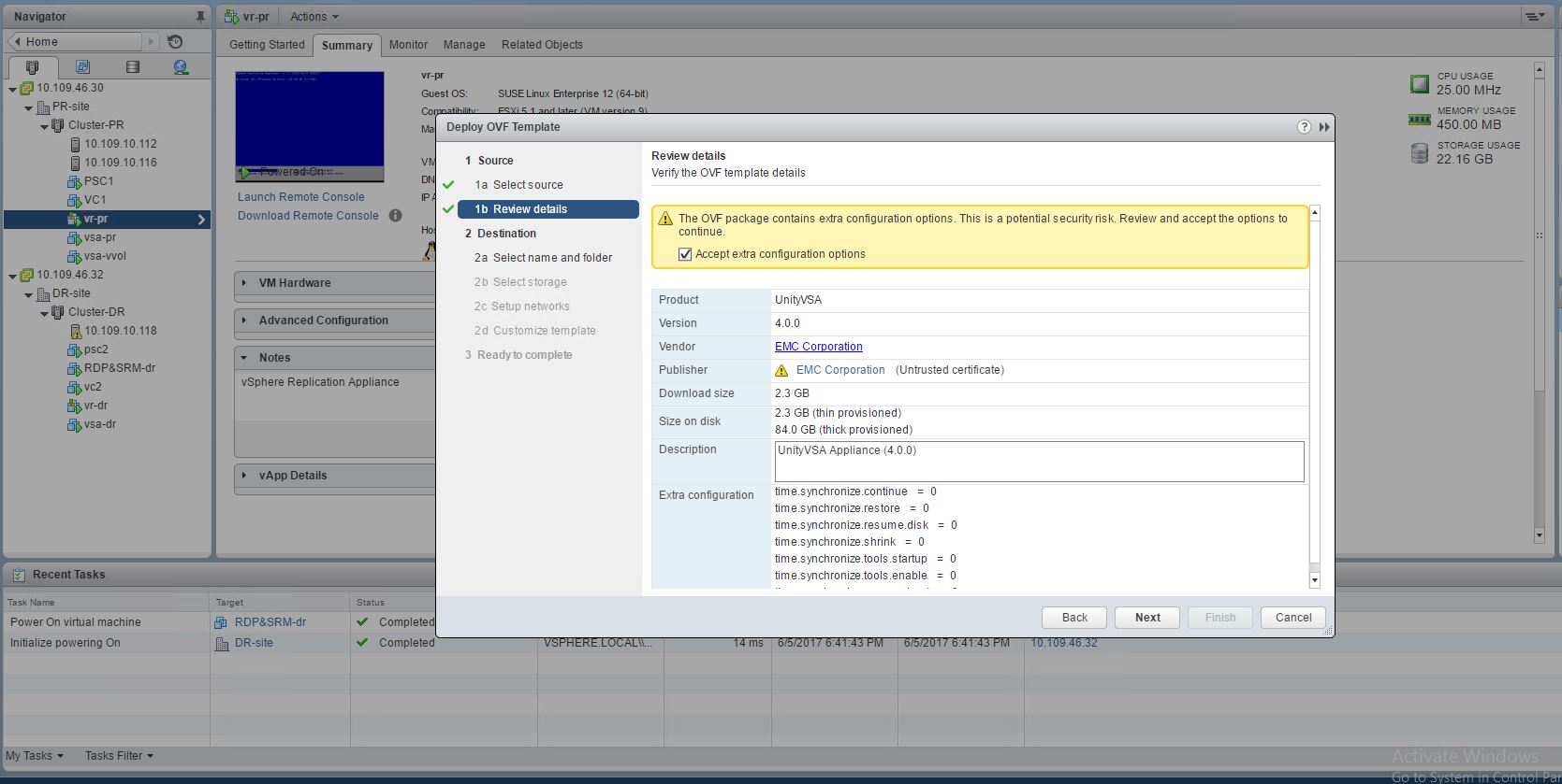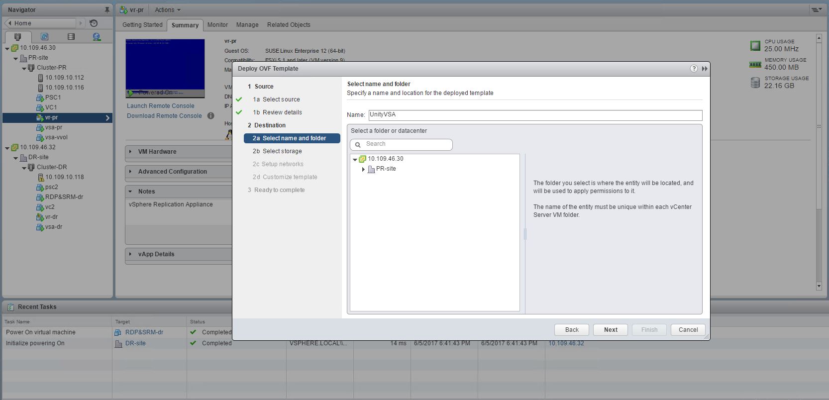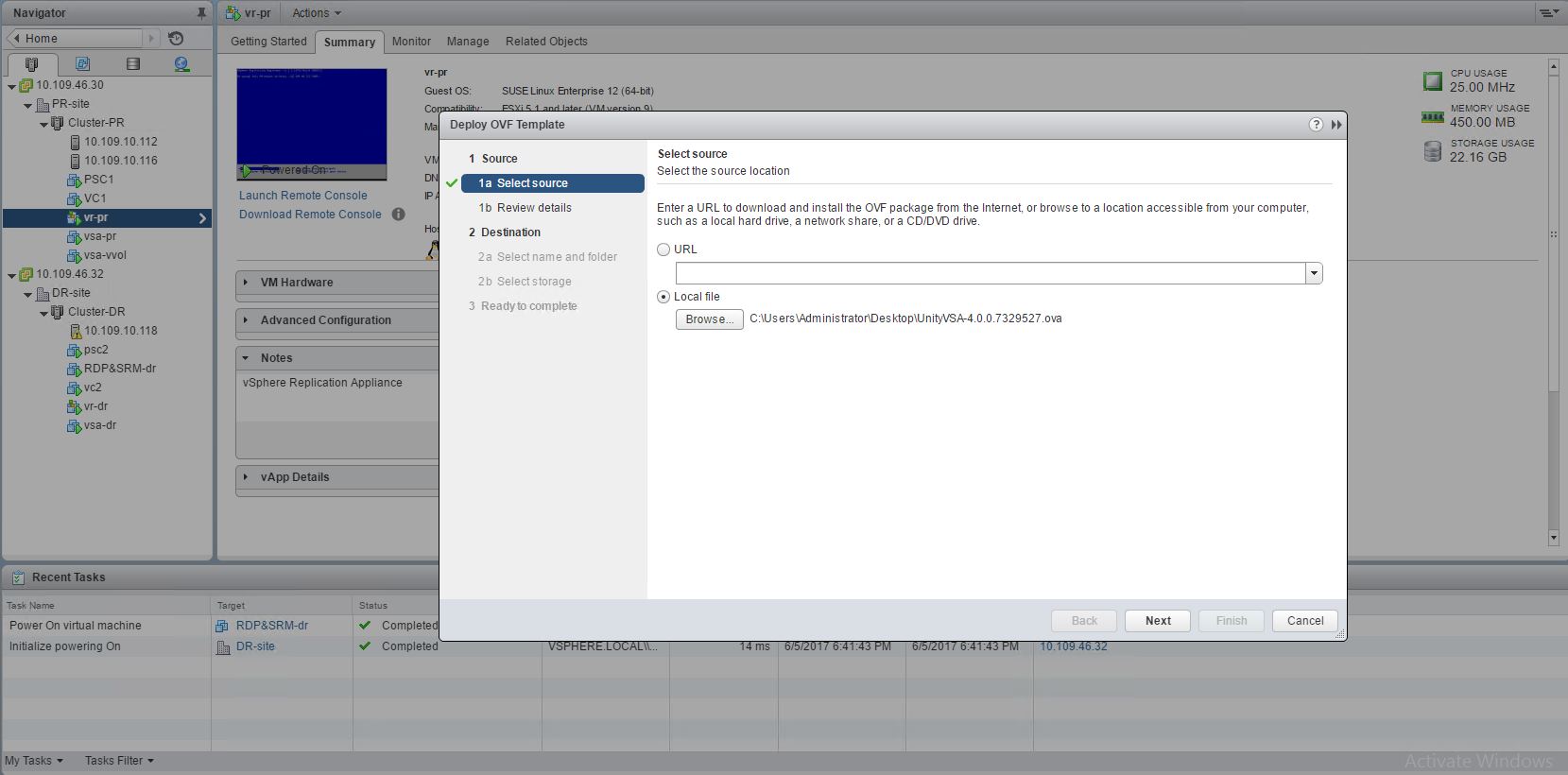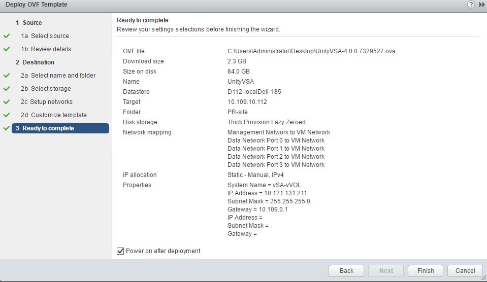 Step2 : Proceed to deploy the OVA on your host which has enough resources per the requirements of the unity VSA .
