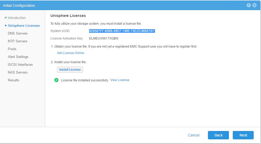 - Get to the Unisphere Licenses tab , you now will be looking at a newly generated System UUID which will automatically be generated post you deploy your appliance , you will need to login again in the EMC portal here and then paste your System UUID and generate your License and download it . You will have a **.LIC **file you will later be able to click on install license and upload your license file to unlock all features of your appliance .