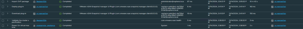 When the appliance is deployed successfully, you will see plugin registration tasks on the vCenter server for SnapService. If you dont see plugins getting registered on the vCenter then your OVF properties during the deployment was incorrect.