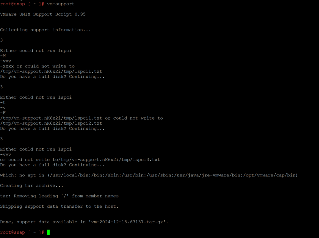 You may also collect support bundles from vSAN Data protection appliance using known command “vm-support” via SSH session , export it via SCP session.